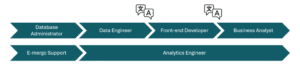 Juist de Analytics Engineer biedt hiervoor een oplossing. Door in dit geval één extra medewerker aan te nemen en je eigen front-end specialist op te leiden heb je snel twee werknemers die elkaars werk begrijpen en kunnen overnemen. Op deze manier kun je groeien, zonder dat je meteen groot hoeft te groeien.