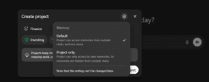 Laten we nog even terugkomen op de ‘project-only’ vs ‘default’ opties voor het geheugen. De ‘project-only’ optie is handig als je wilt dat het algemene geheugen van jouw chat en het projectgeheugen gescheiden blijven. Een voorbeeld is wanneer je op 2 projecten werkt die beiden een geheel andere context hebben. Die context moet niet mengen.